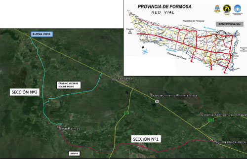 We made the executive project for the basic works and paving of Provincial Route N° 4 (between Naick Neck Lagoon and National Route N° 86, Buena Vista) and the executive project of Provincial Route N° 8 (between Siete Palmas and Route N° 2, Camino Vecinal Sol de Mayo). The total length of the project was 55 km.